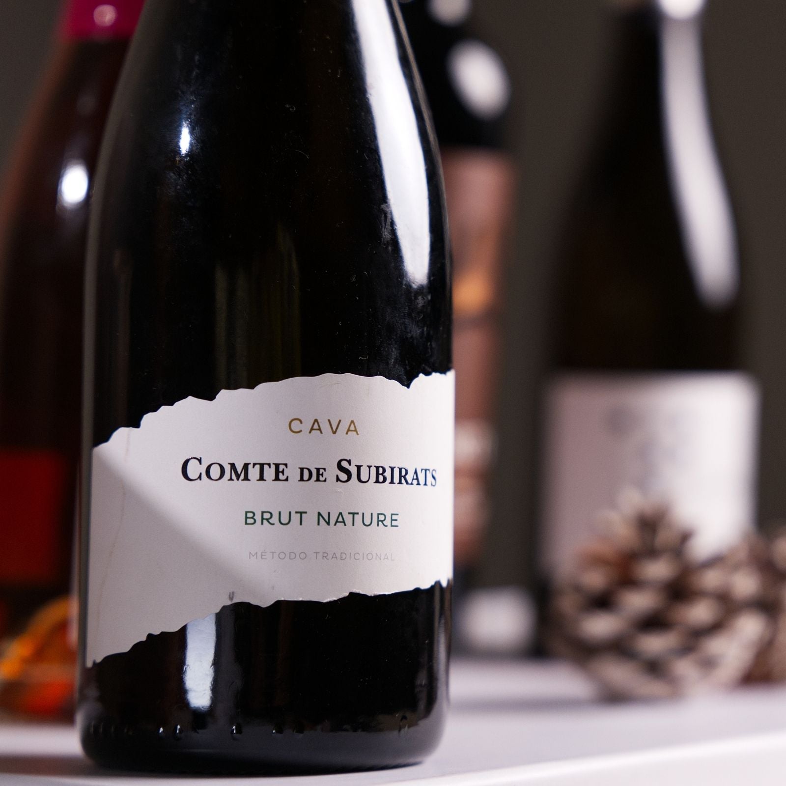 - 1 botella de Cava Comte de Subirats Brut Nature: espumoso de la Bodega Vilarnau elaborado mediante el método tradicional con variedades Macabeo, Parellada y Xarel·lo.