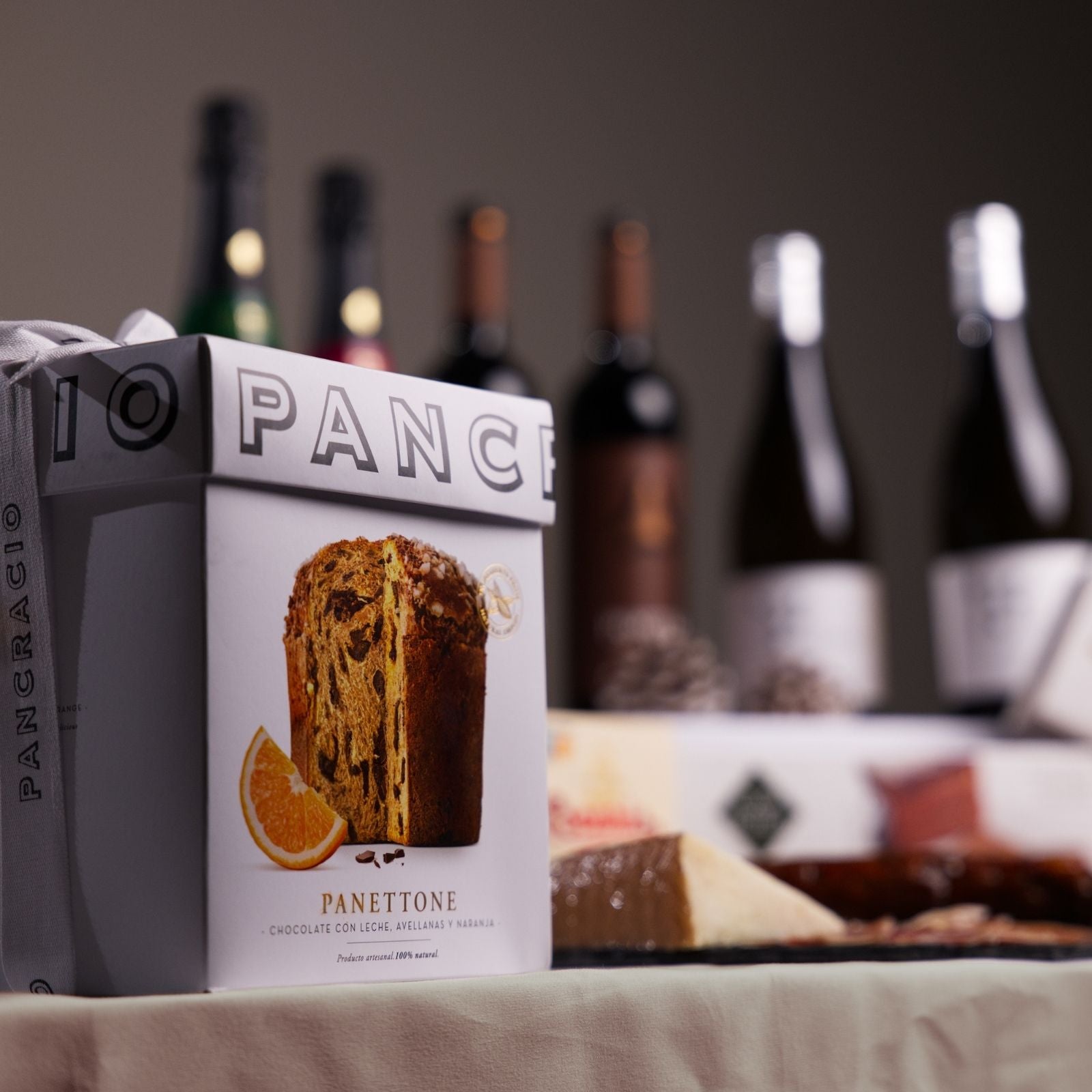 - Panettone Pancracio: pieza de 500 g. Elaborado con masa madre y relleno de crema de chocolate con avellanas.